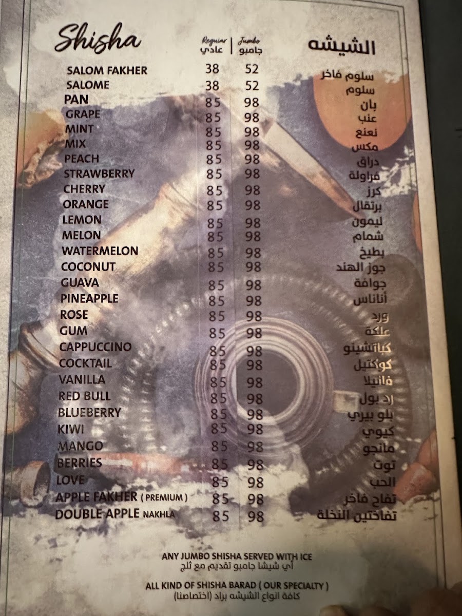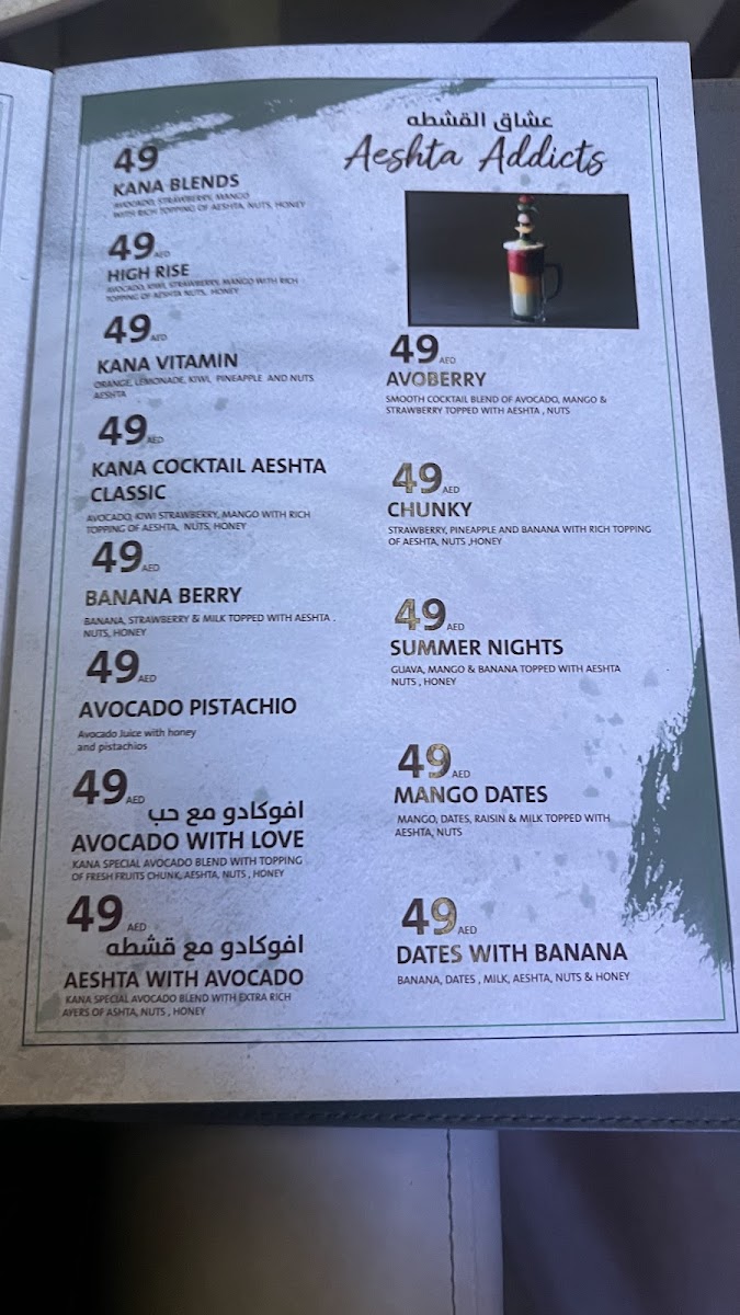 Kana Cafe in Uptown Mirdif Mall is a flavorful gem for coffee lovers and shisha enthusiasts alike. This spacious cafe boasts an inviting ambiance with dedicated areas for ladies and a cozy outdoor seating ideal for cooler months. The menu offers a delightful mix of traditional and modern dishes, each crafted with care. Highlights include the turkey and cheese saj, praised for its rich and savory blend, alongside a variety of other saj options that cater to diverse tastes. The kinafa stands out as a unique dessert, blending textures and flavors beautifully. For those mindful of health, Kana Cafe provides wholesome breakfast plates and fresh fruit salads, which many guests find both generous and delicious. Complementing the food is their high-quality shisha with clean, disposable hoses, making socializing all the more enjoyable. Overall, Kana Cafe creates an inviting spot where exquisite food and a relaxed atmosphere come together seamlessly.